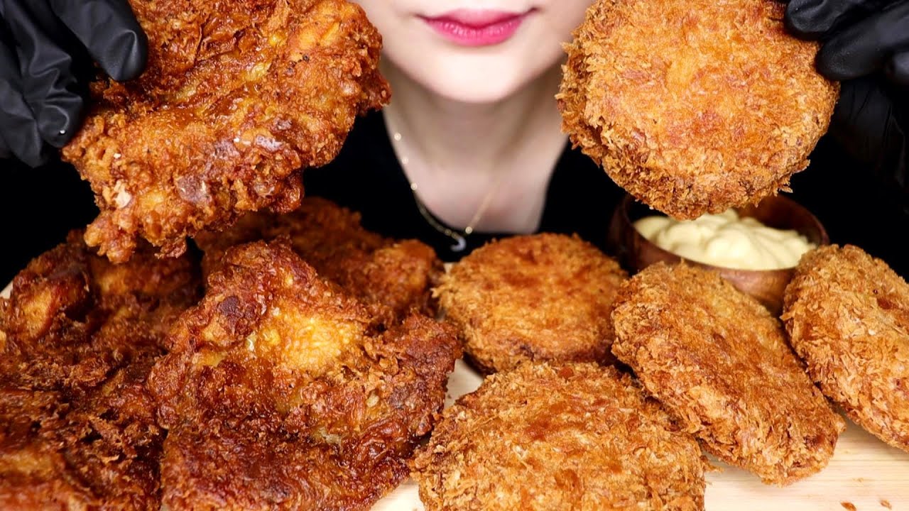 大きな唐揚げ ザクザクキャベツのメンチカツを食べる FRIED CHICKEN 멘치 카트