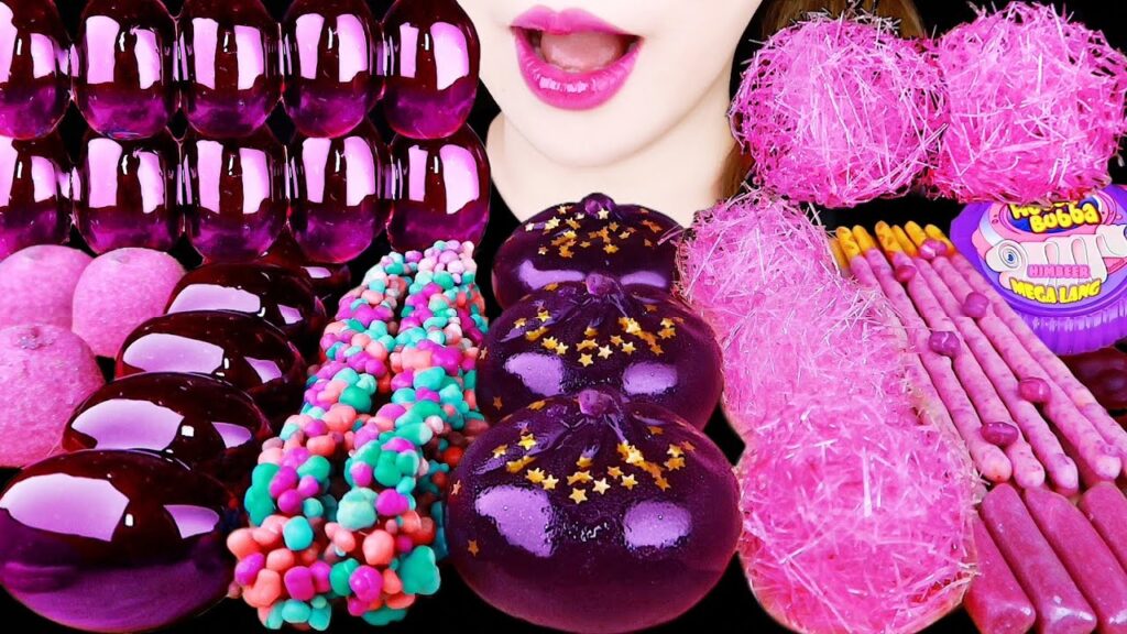 만두 젤리, 엔젤 캔디, 포도 탕후루, 마시멜로, 빼빼로, 수수깡 젤리, 로프젤리, 후바부바, 마이구미 먹방 PURPLE FOODS EATING SOUNDS MUKBANG