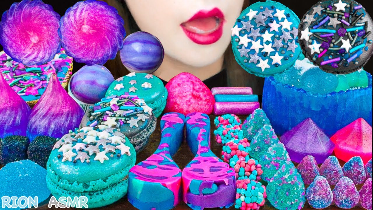 【ASMR】GALAXY DESSERTS💜💙 GALAXY MACARON,GALAXY SPOON,RAMUNE WARABI MOCHI MUKBANG 먹방 EATING SOUNDS