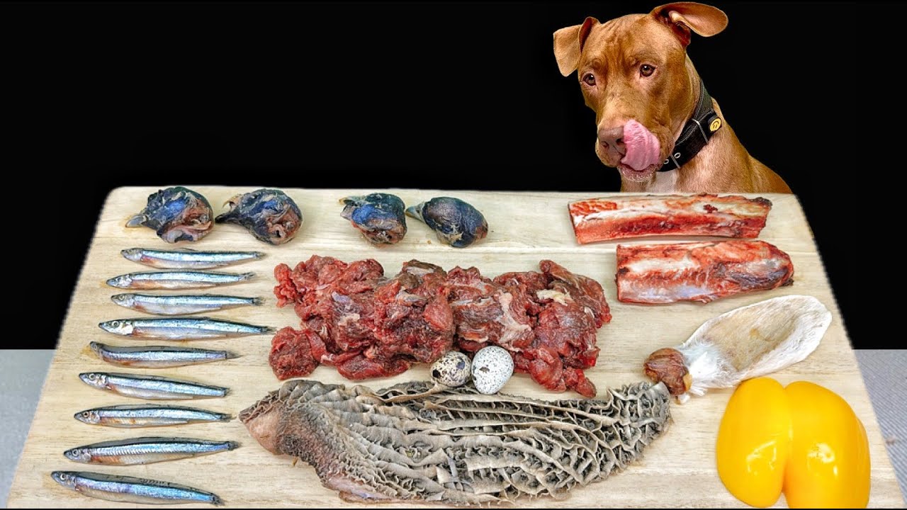 アヒルのネック 鹿のトライプ ウズラ 馬の肺 鶏の足 鹿肉 人参 兎の耳のジャーキ 烏骨鶏の頭 ウズラの卵 パプリカ キビナゴ ハチノス 牛の肋 馬肉