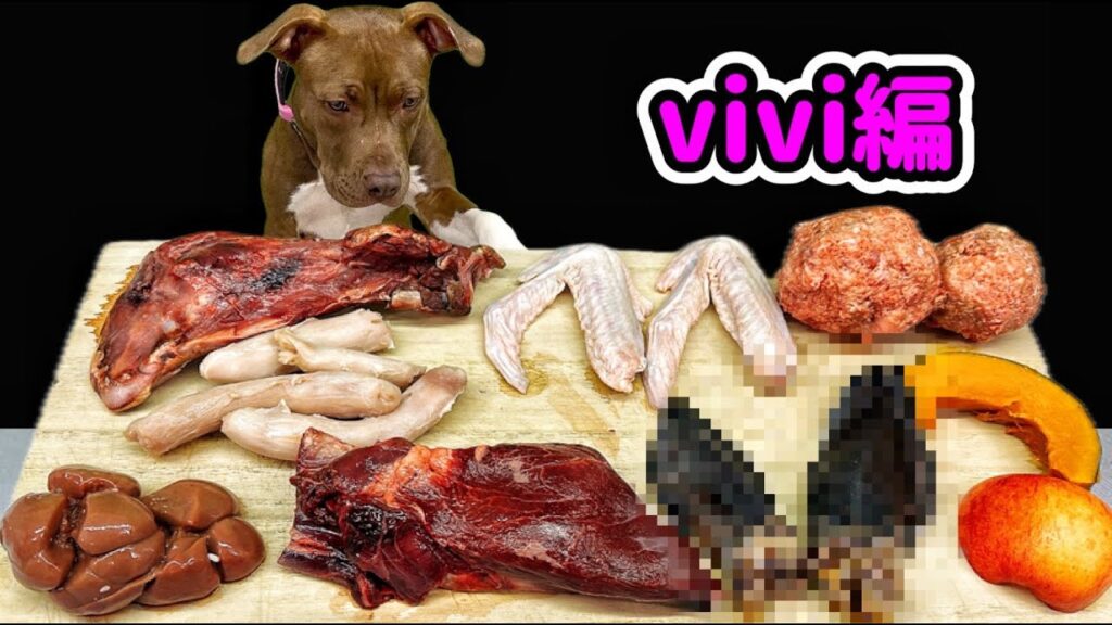 カボチャ、りんご、鹿の耳、鶏ガラミンチ、牛の腎臓、豚の産道、アヒルの手羽先