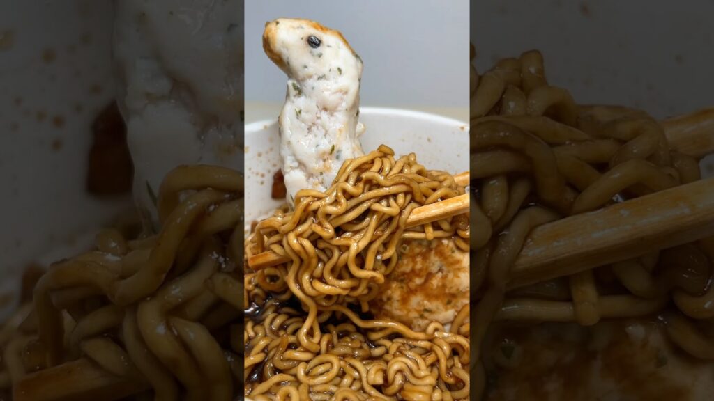 black sauce noodles with dinosaur shaped chicken breast #asmr #koreanfood umihiko 1年前 #asmreating #koreanfood #conveniencestore #noodles #shorts