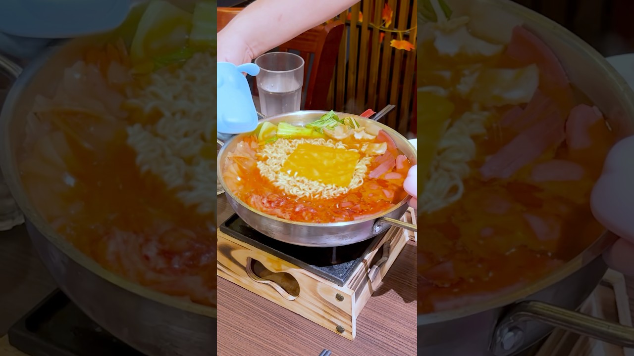 00:00 Korean Army Soup: Most popular hotpot in Korea. Spicy soup made with 4 varieties of sausages and ham, Kimchi, vegetables, and instant noodle.
