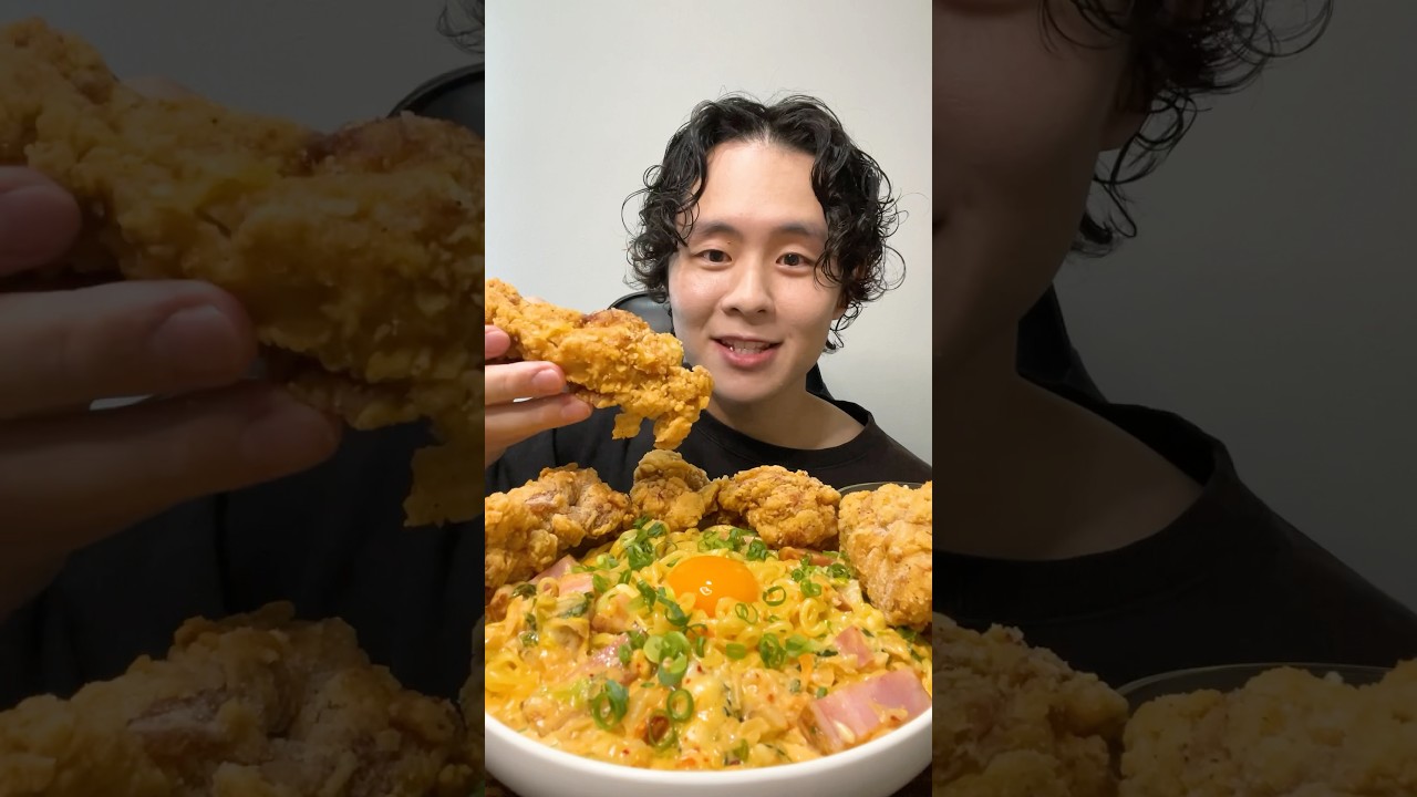 辛ラーメンキムチアレンジ&ガーリックチキン🧄#辛ラーメン #asmr #mukbang #大食い