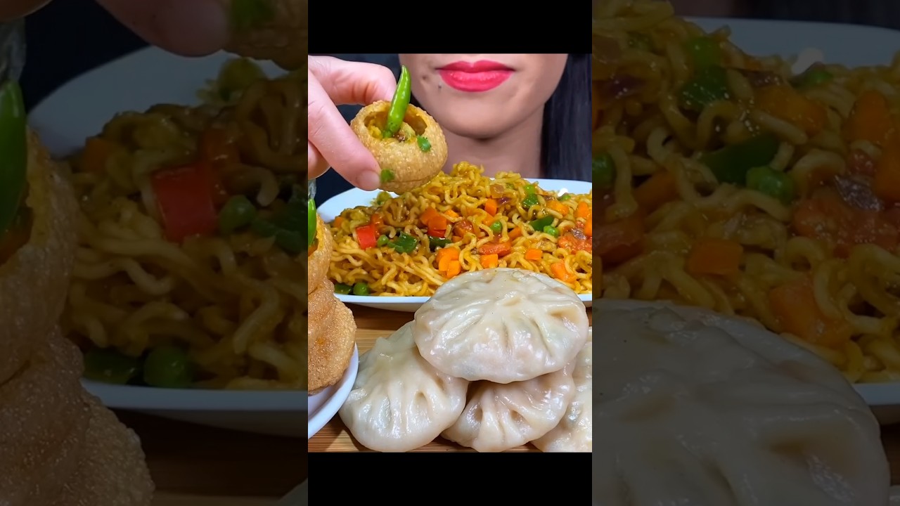 ASMR: Eating indian street food eating challenge 😍 momo noodles Pani Puri dahi Puri samosa Mukbang