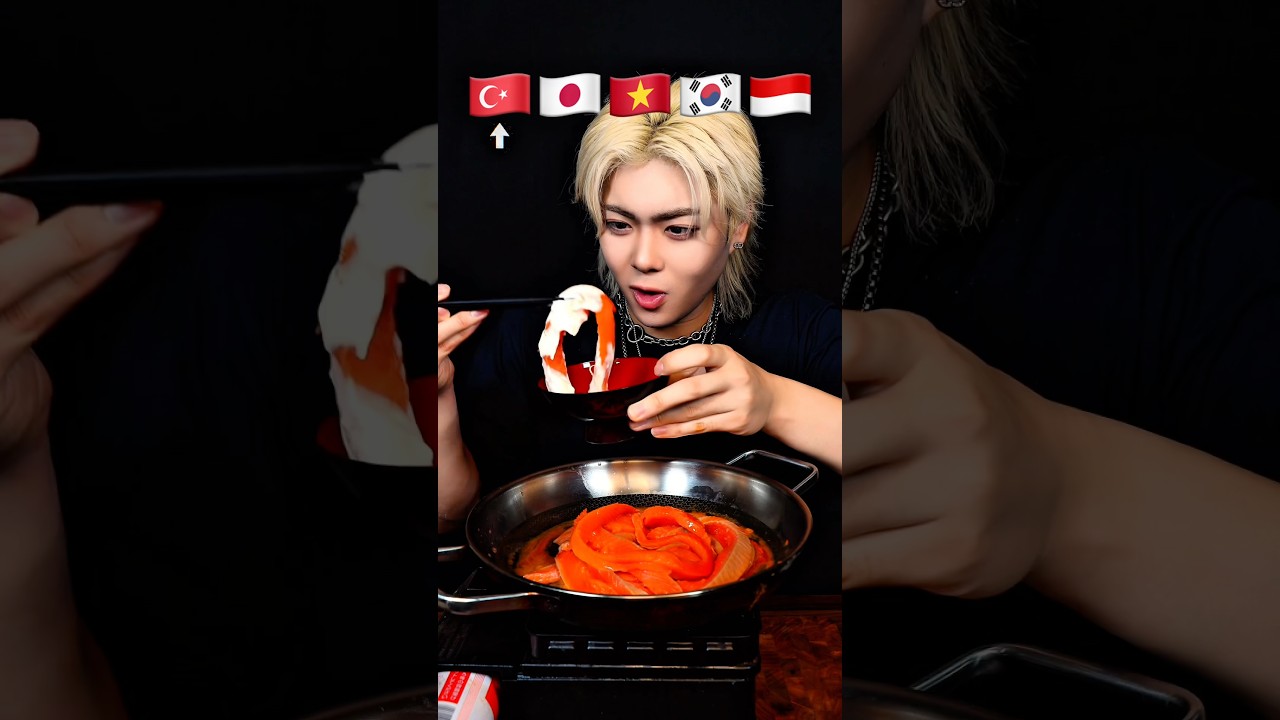 サーモン麺を世界の調味料で食らう。🌏😋👍 #shorts #asmr #mukbang #challenge