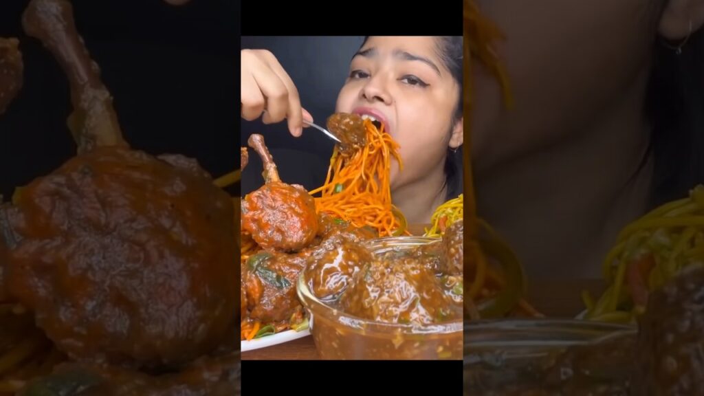 ASMR: Eating Manchurian With Noodles And Maggie Eating Challenge 😍😋 chicken lolipop eating Mukbang🔥🔥