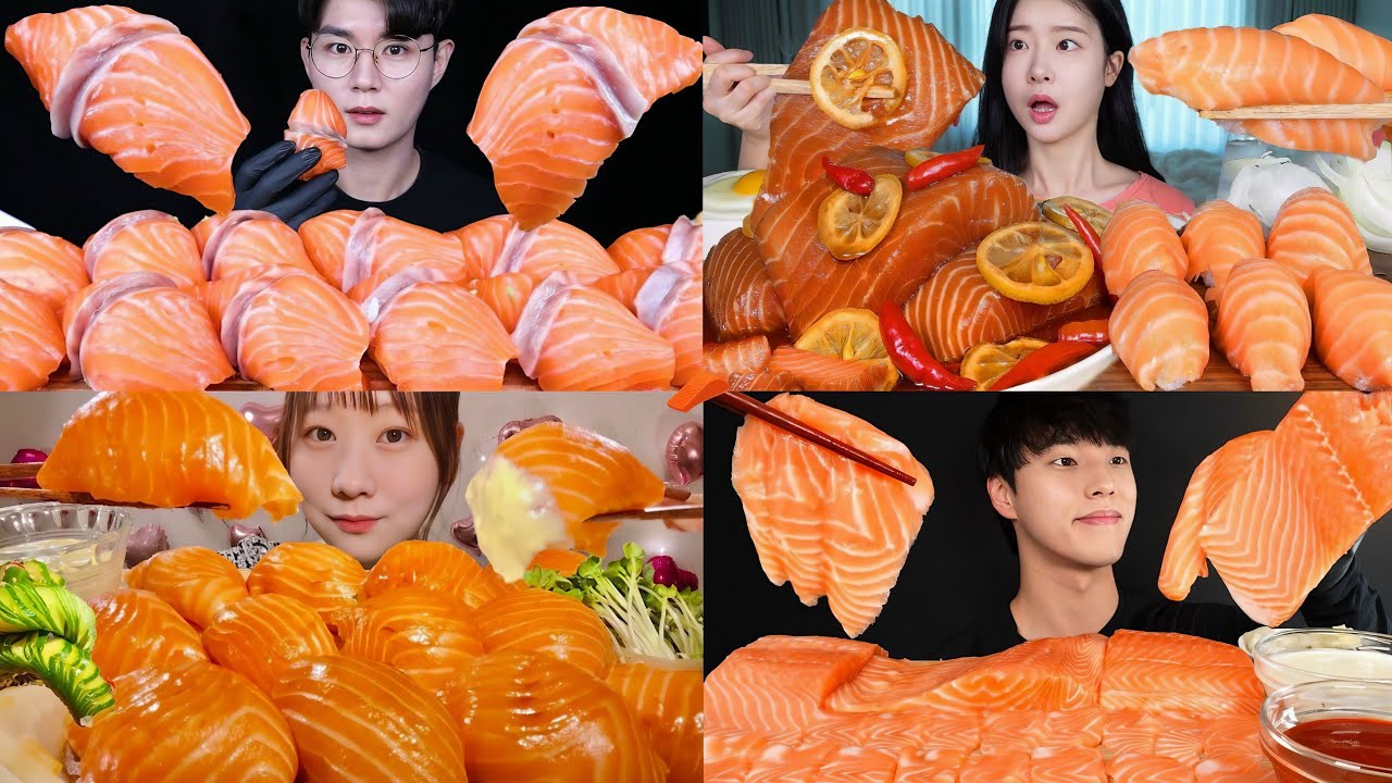 ASMR SALMON SUSHI MUKBANG HAINT SALMON FISHING MUKBANG SALMON SASHIMI MENTAH EATING SHOW
