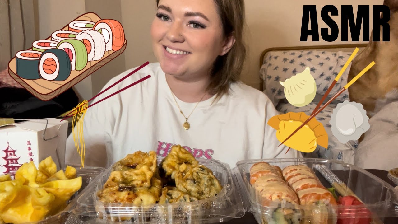 ASMR SUSHI MUKBANG🍣 SUSHI, CRAB RANGOONS, LO MEIN❤️