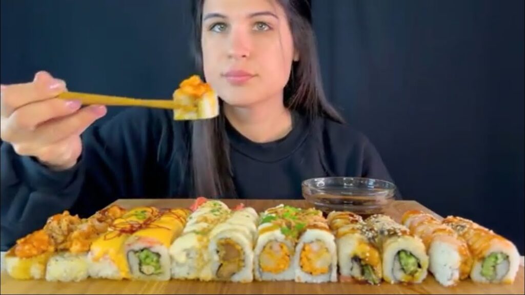 Video: ASMeRi ASMR spicy sushi mukbang bites only