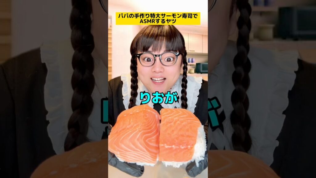 パパの手づくり特大サーモンお寿司で ASMRするヤツw #ASMR #学校あるある #家族あるある #子どもあるある #ママあるある #パパあるある