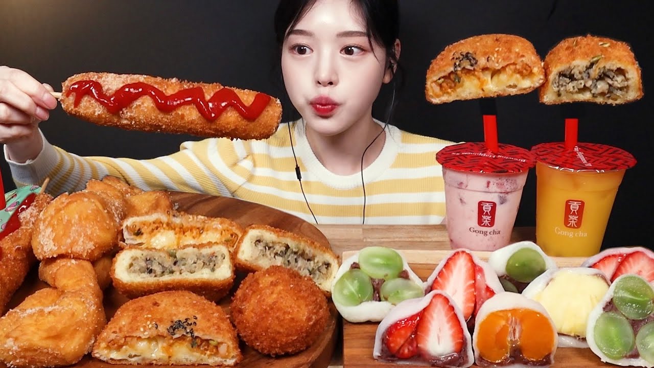 SUB)파사삭!쫀~득한 꽈배기에 고로케 대왕핫도그 먹방!🌭치즈볼 과일찹쌀떡 버블티까지 디저트 꿀조합 리얼사운드 Dessert Mukbang Asmr